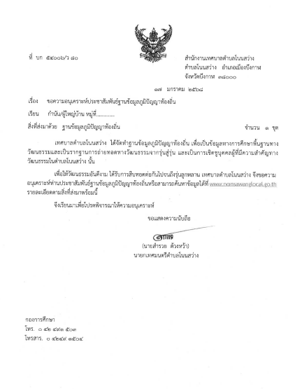 ขอความอนุเคราะห์ประชาสัมพันธ์ฐานข้อมูลภูมิปัญญาท้องถิ่น พ.ศ.2568