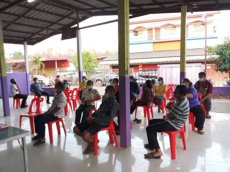 พร้อมเจ้าหน้าที่ ได้ออกประชาคมหมู่บ้านเพื่อปรึกษาหา และชี้แจงปัญหาและพิจารณาโครงการธนาคารขยะ ณ วัดสว่างสำราญธรรมคุณ